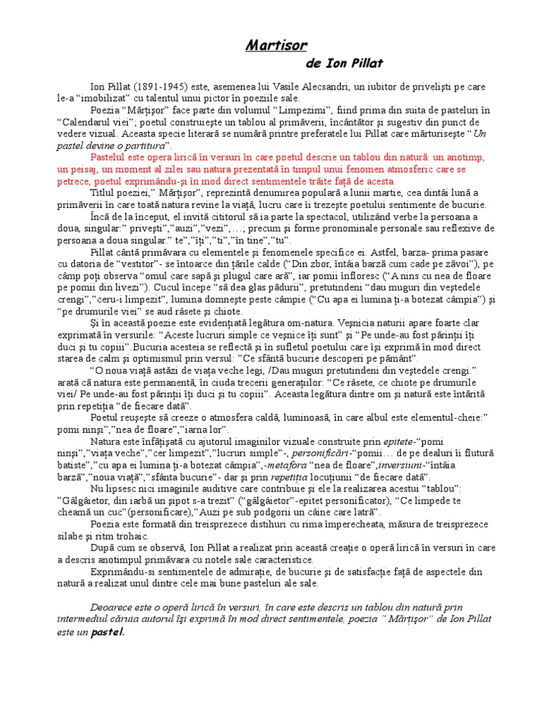 Martisor De Ion Pillat Versuri